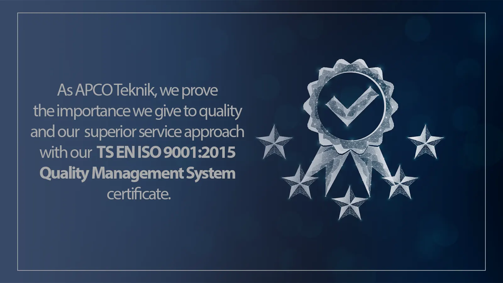 APCO is TS EN ISO 9001:2015 Quality Management System Standard, TS EN ISO 14001:2015, TS OHSAS 45001:2018 certified.